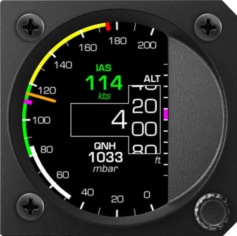The Iris All-in-One combines a digital airspeed indicator and altimeter into a single, compact instrument.